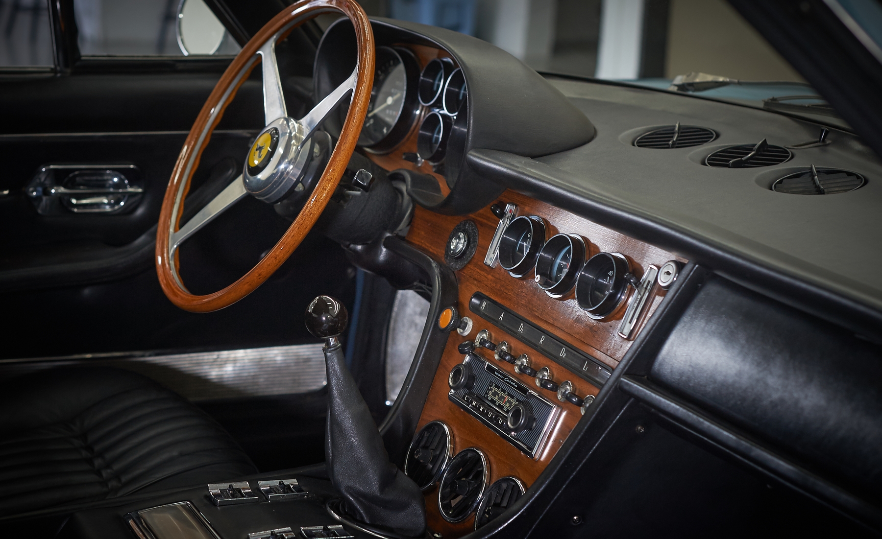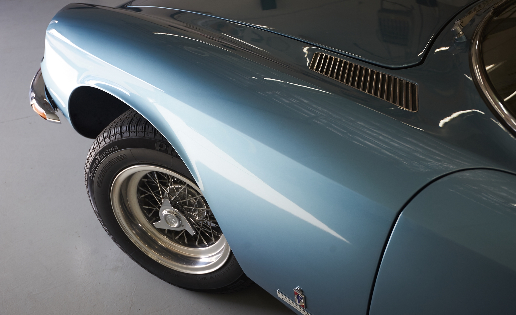 The car was purchased in London. Matching numbers car in its original color of Azzuro Metalico with black (Nero hides) Paint and interior are correct, but part of an older restoration. European model, first year of production