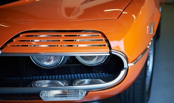 Though far from a show car, it is an honest and clean driver. Orange/Black houndstooth